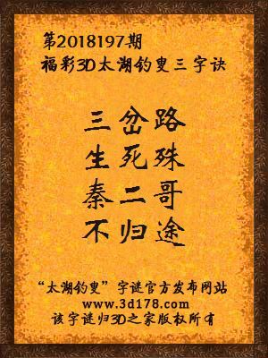 下面开始解3d第2018197期太湖字谜: