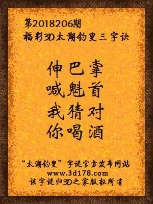 下面开始解3d第2018206期太湖字谜: