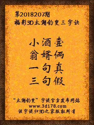 福彩第2018207期3d太湖字谜:小酒壶,翁婿俩,一句真,三句假