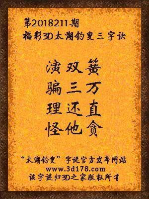福彩第2018211期3d太湖字谜:演双簧,骗三万,理还直,怪他贪