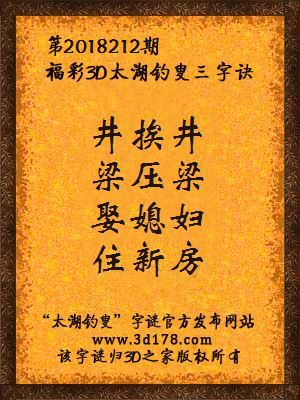 福彩3d第2018212期太湖钓叟三字诀