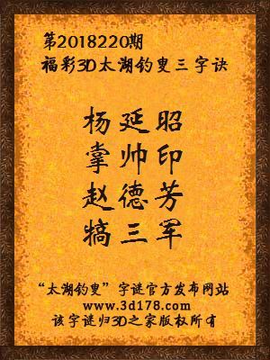 下面开始解3d第2018220期太湖字谜: