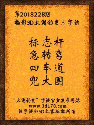 下面开始解3d第2018228期太湖字谜: