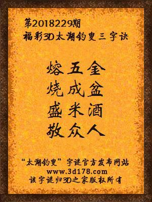 福彩3d第2018229期太湖钓叟三字诀