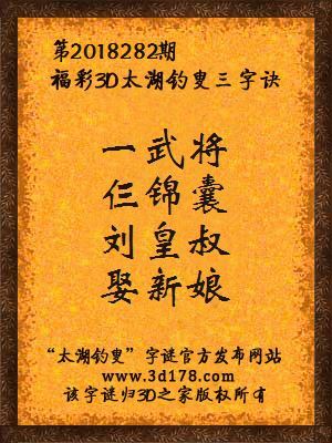 福彩第2018282期3d太湖字谜:一武将,仨锦囊,刘皇叔,娶新娘