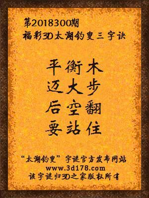 福彩第2018300期3d太湖字谜:平衡木,迈大步,后空翻,要站住