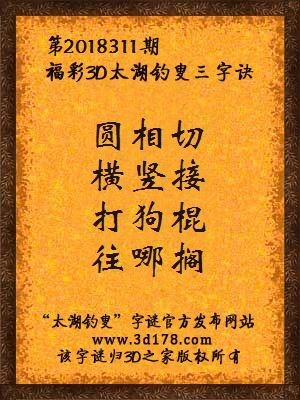 今日3d太湖字谜总汇,3d之家为您详细解答2018311期3d太湖字谜,并汇总多位专家精解太湖字谜供参考。