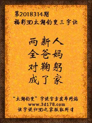 下面开始解3d第2018314期太湖字谜: