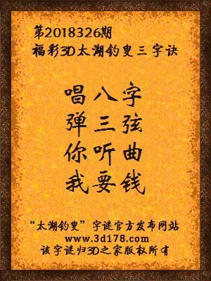 福彩第2018326期3d太湖字谜:唱八字,弹三弦,你听曲,我要钱