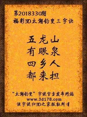 福彩第2018330期3d太湖字谜:五龙山,有眼泉,四乡人,都来担