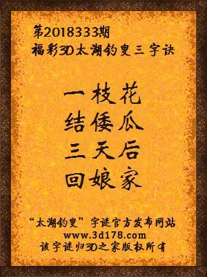 福彩第2018333期3d太湖字谜:一枝花,结倭瓜,三天后,回娘家
