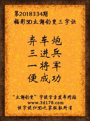 福彩第2018334期3d太湖字谜:弃车炮,三进兵,一将军,便成功