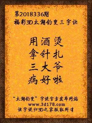 福彩第2018336期3d太湖字谜:用酒烫,拿针扎,三大爷,病好啦
