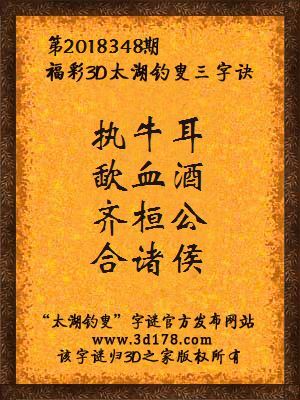 3d第2018348期马后炮解太湖字谜之执牛耳