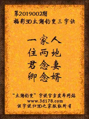 今日3d太湖字谜总汇,3d之家为您详细解答2019002期3d太湖字谜,并汇总多位专家精解太湖字谜供参考。