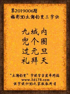 福彩第2019006期3d太湖字谜:九城内,兜个圈,过元旦,礼拜天