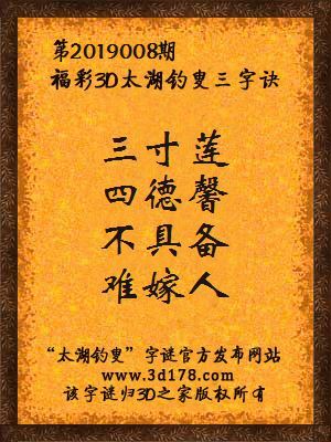 福彩第2019008期3d太湖字谜:三寸莲,四德馨,不具备,难嫁人