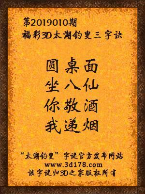 福彩第2019010期3d太湖字谜:圆桌面,坐八仙,你敬酒,我递烟