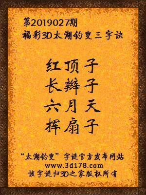 福彩第2019027期3d太湖字谜:红顶子,长辫子,六月天,挥扇子
