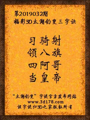 3d字谜专家众生缘解太湖第2019032期:领八旗